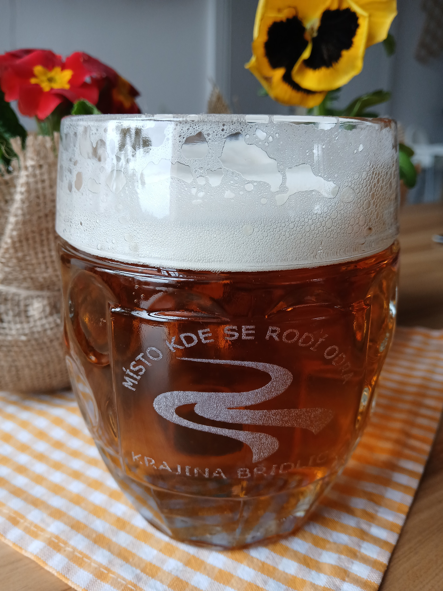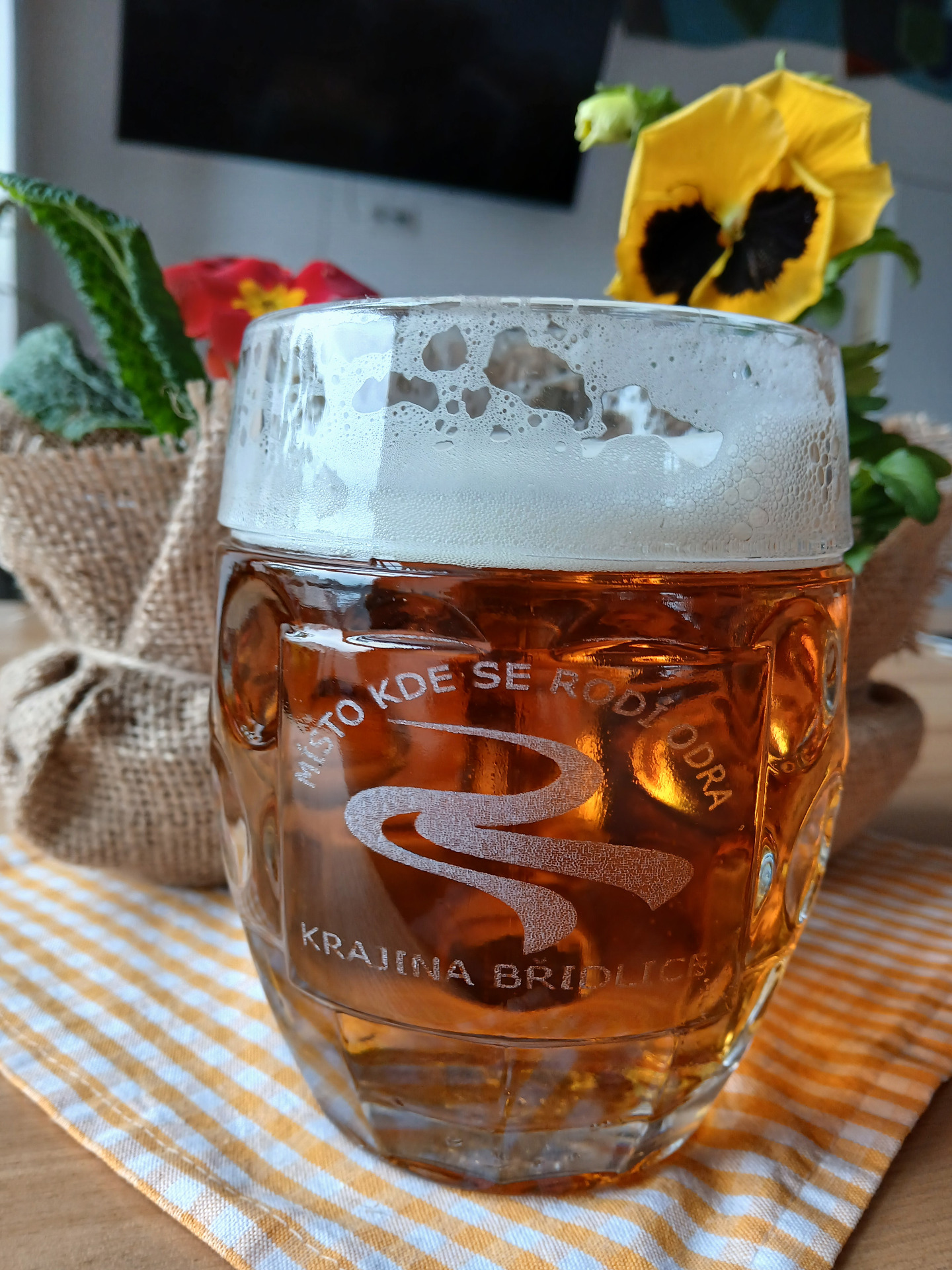 Skleněný půllitr s vygravírovaným textem "KRAJINA BŘIDLICE, MÍSTO KDE SE RODÍ ODRA".